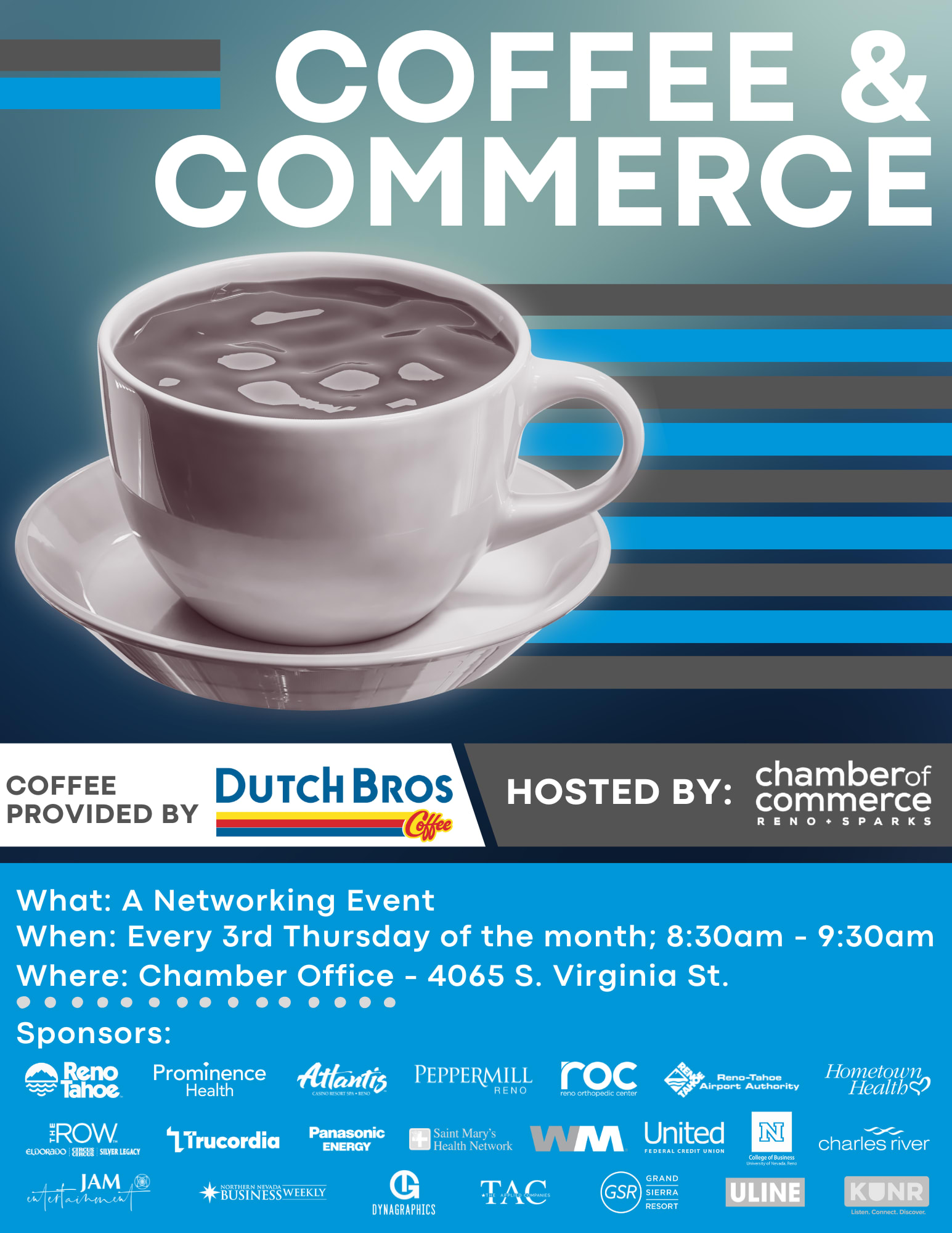 Please join the Chamber for our monthly Coffee & Commerce Networking Event. Coffee provided by Dutch Bros. Coffee